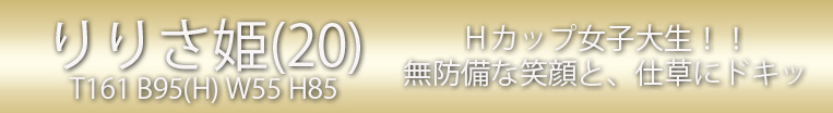 華やかな美貌とお客様の下半身を誘惑し続ける極上ボディの現役女性大生がデビュー☆皆様の期待を遥かに凌駕す、世の男性全てを骨抜きにしてしまいそうな類を見ないルックス・スタイル!ピチピチの天然Fカップは色・形・大きさ3拍子揃った完璧なるおっぱい☆揉んで、舐めて、挟まれて!!ぷりっぷりのエロいカラダを全身で感じて昇天して下さいませ☆お客様満足度&ヤミツキ度120%!必ずご満足いただけることをお約束致します☆