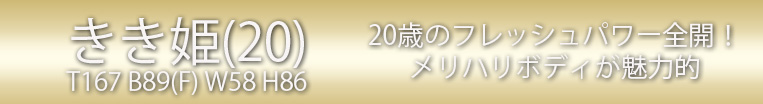ユウミ姫age21 T164 B91(G) W56 H85