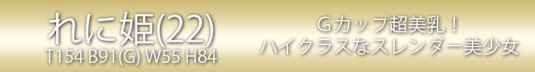 《超絶エロいモデル級プロポーション》《フンワリEcupの超美乳》《瑞々しさ際立つやや小さめな桃尻》の3大エレメントが奏でる奇跡のハーモニー!!他を寄せ付けぬほどのキレカワ清楚なルックスにマシュマロのようなEcupの超美乳を搭載したスレンダー美BODYなプロポーションは最高峰の逸材にして魅力抜群の破壊力!!『にの姫』のデビューで御座いマス!!白く透き通った張りのあるお肌は、まさしく水をはじく珠の肌!さわり心地&抱き心地はもうそれだけで満足出来てしまいそうなほどの上質感!!超絶なエロさを醸すボディラインは、ただもうそれだけで、お客様の理性を狂わせるには十分かつ強力にエッジの効いた魅力が燦然と輝いております!!☆