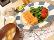 サーモンのレアカツ&アボカドサラダ&イワシのつみれ汁を作りました☺️